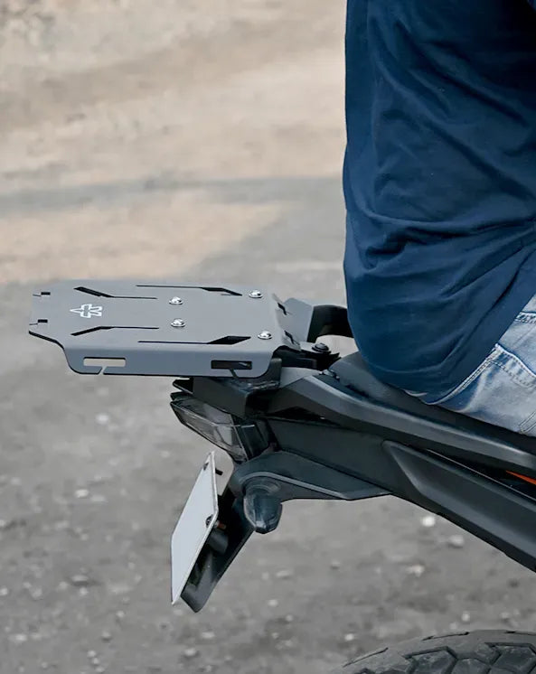 The KTM Adventure 250/390 Quick Mount Rear Rack has been designed with a large surface area to accommodate a balanced load.