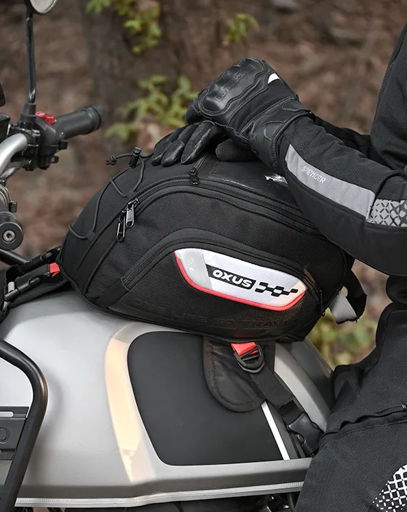 - The Oxus Tank Bag is designed to be convenient for your daily rides and more. Easily organize and access all essentials on the go - wallet, license, keys, sunglasses, quick access tools, gloves with the EBC net etc