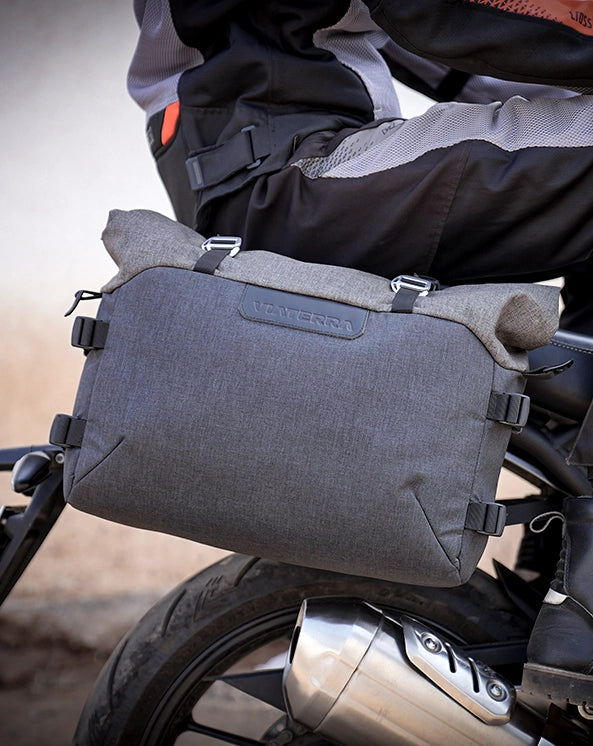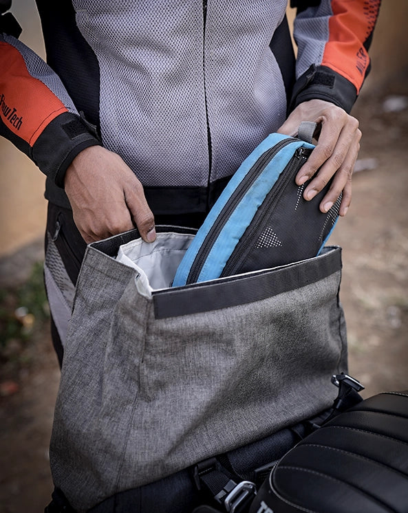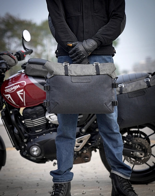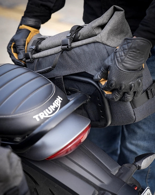 Use the built-in handle to carry it off the bike, or as a duffle with the detachable shoulder strap.