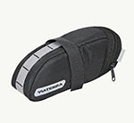 Fits snug under the saddle and has adequate space for a spare tube, tools and small snacks