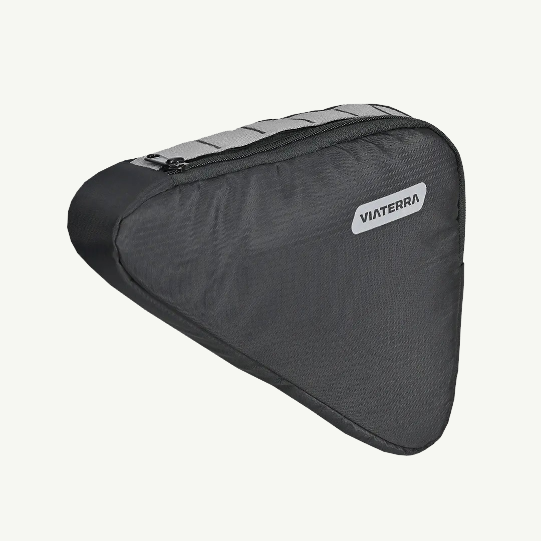 Streamlined for daily commutes and lightweight tours, the ViaTerra Triangle Cycling Bag fits snugly within your bike’s frame to maximize storage without affecting ride balance. Built using durable, water-resistant fabric and designed for quick access, it’s the perfect stash spot for tools, spares, or snacks on the go. Secure mounting, minimal bulk, and clean aesthetics make it a smart addition to any bicycle setup.