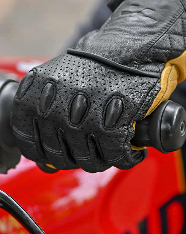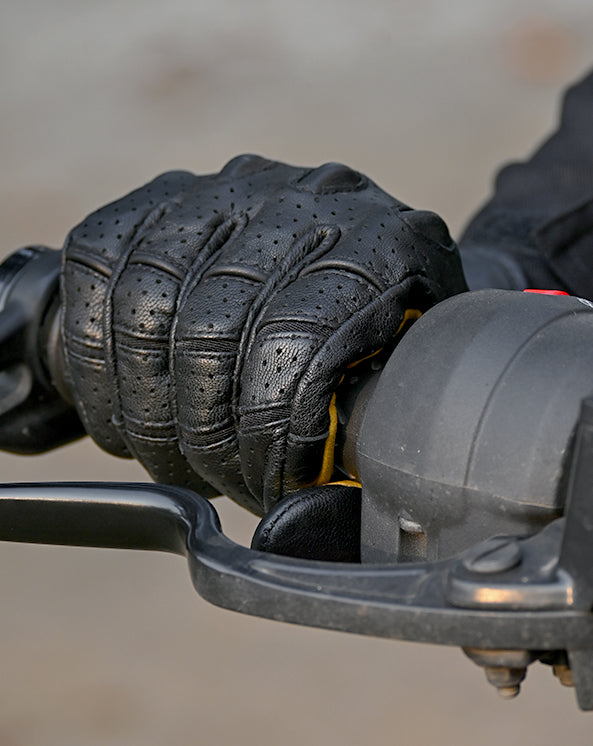 The perforated leather used on the back of the hand as well as the palm allows air flow and helps keep you comfortable over the ride.