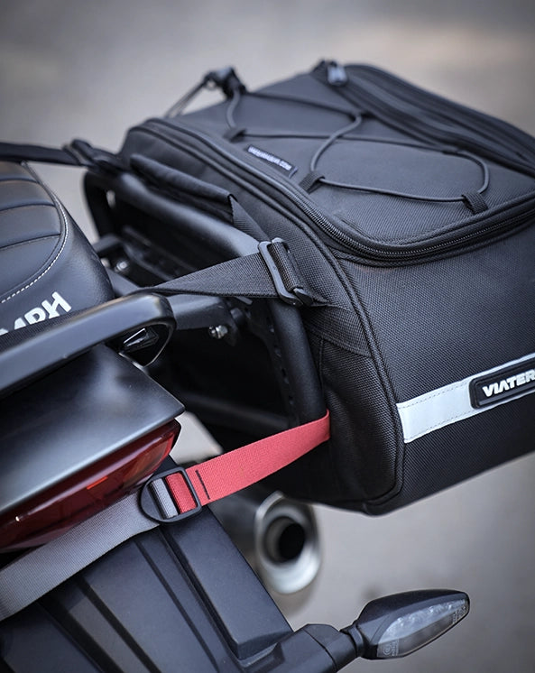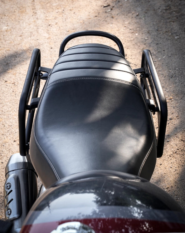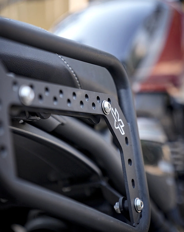 Aesthetics styled to give a sleeker look to the Speed 400 without a protruding cross mount. The use of button head screws prevents the fabric of the saddlebag from damage due to abrasion.