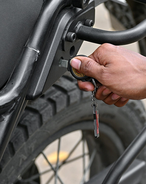 Designed to give a subtle, minimalist look to the Himalayan. No welds or bolts on the contact areas which means the fabric of the saddlebag is safe from damage due to abrasion.