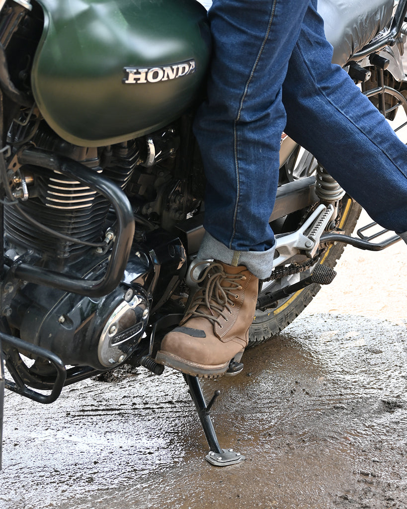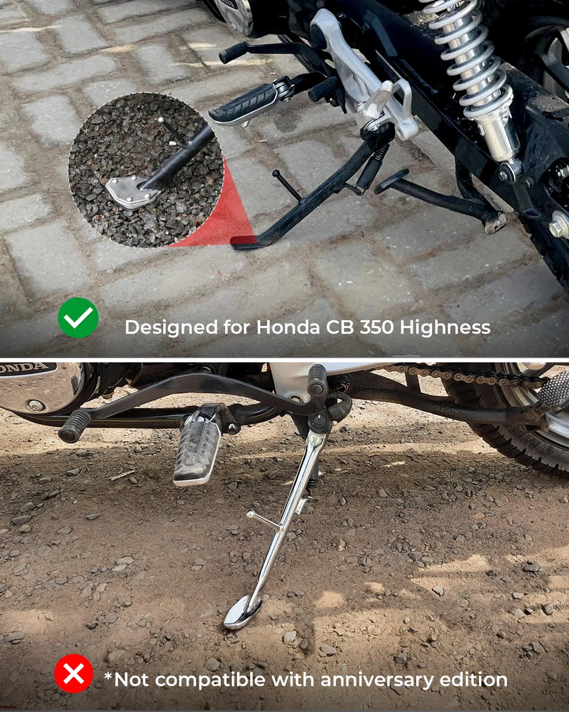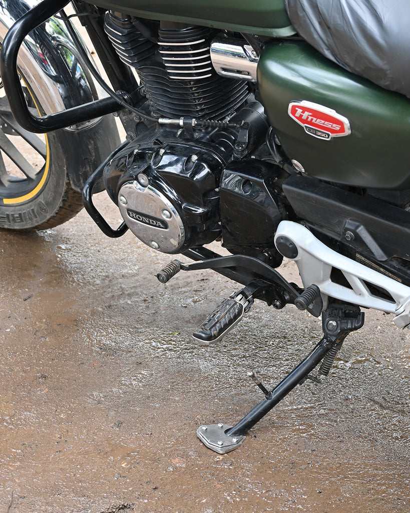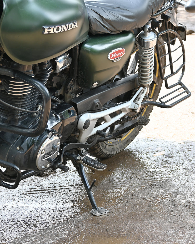The unique design of the Honda Highness CB 350 ensures a firm grip even on the uneven surface of the side stand