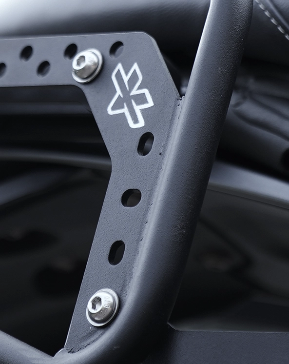 Aesthetics styled to give a sleeker look to the Speed 400 without a protruding cross mount. The use of button head screws prevents the fabric of the saddlebag from damage due to abrasion.