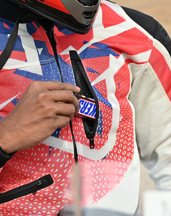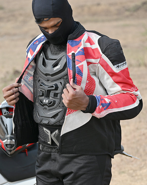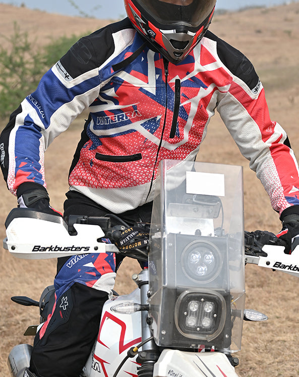 The Corbett Off-Road jacket and pants are designed to be worn over body armor and armored shorts. While the body armor sits close to the body, ensuring that it stays in place, it is important to make sure that the outer shell does not cause any discomfort or restriction. To ensure flexibility while riding, the outer shell should allow for adequate space and should not inhibit your movement.