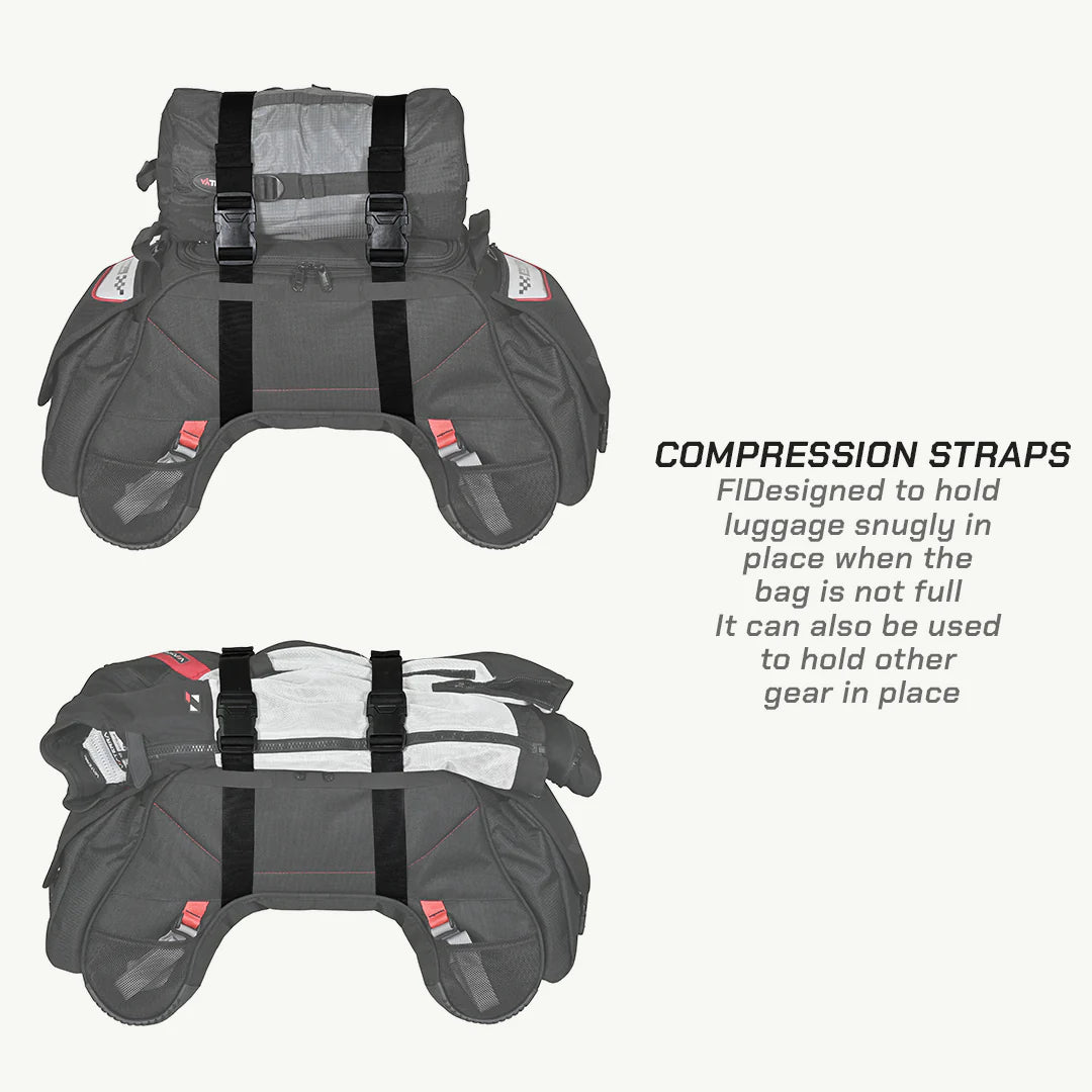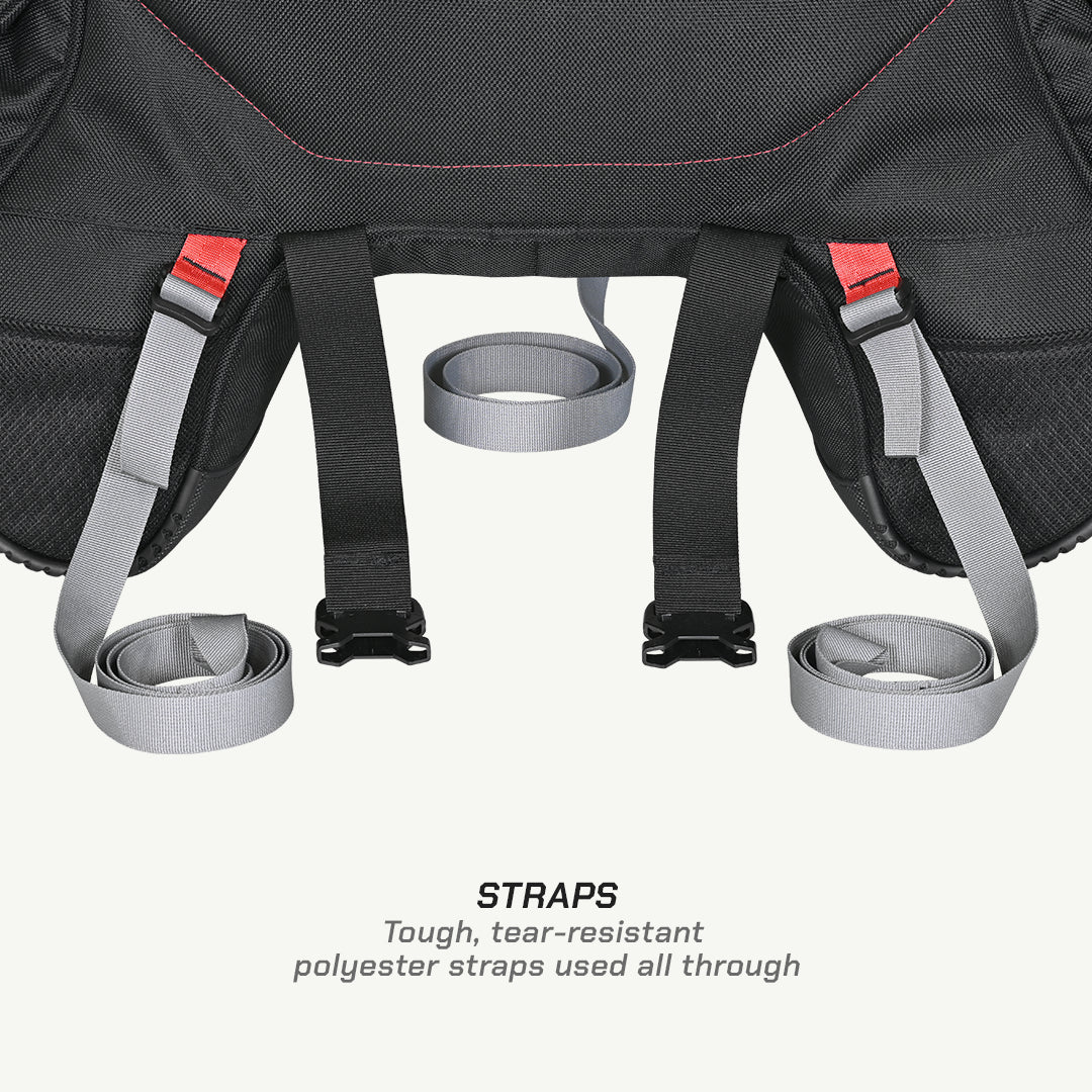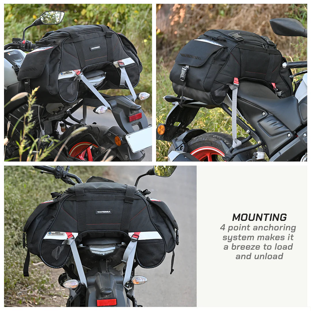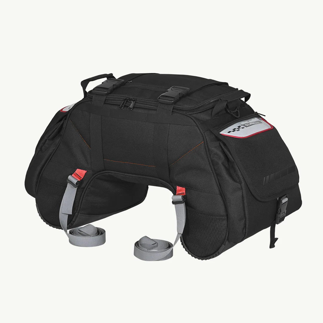 - One strap goes under the tail lamp to prevent the bag from sliding forward