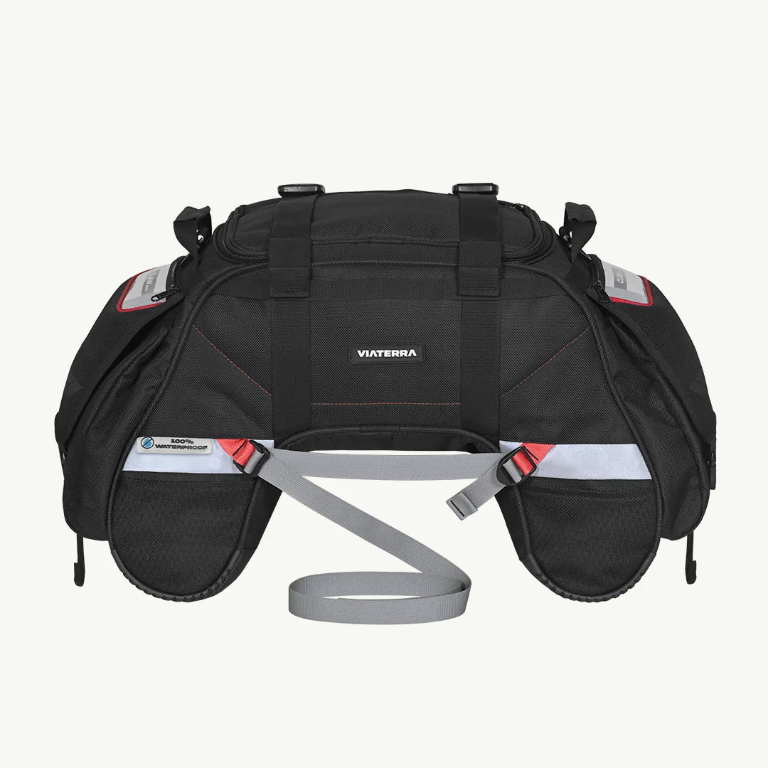 - Removable shoulder strap for easy movement off the bike – with a special pocket on the side flaps for storage