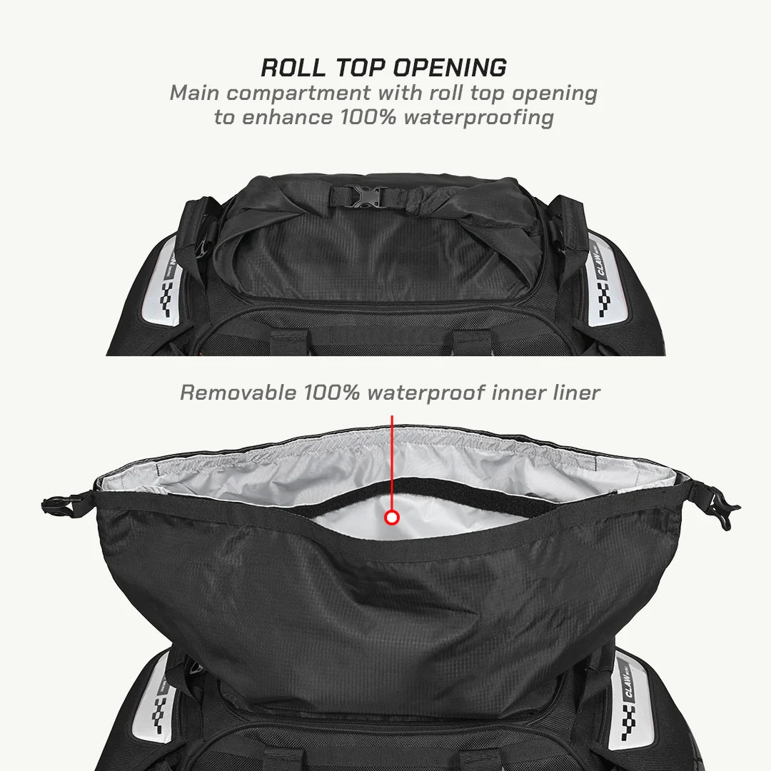 - 100% waterproof inner drybag liner rated for 5000mm water pressure and seam sealed on all stitches to withstand heavy rains.