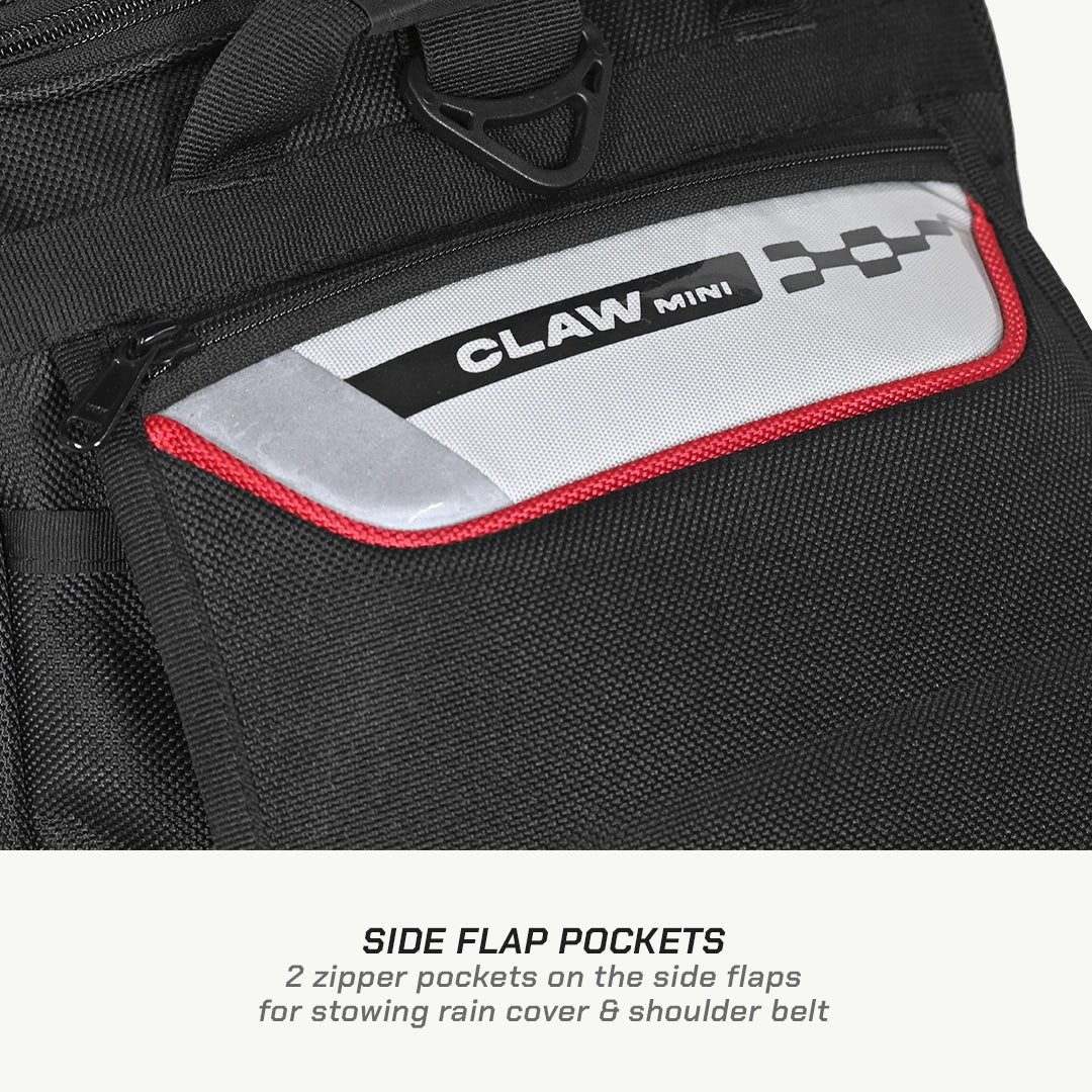 - 2 zipper pockets on the side flaps as additional pockets for storing rain cover & shoulder belt