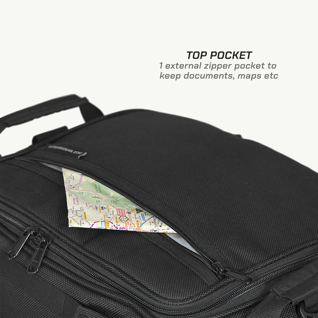 - 1 easy access zipper pocket on the top to keep bike papers, wallet, maps or other small/flat items etc.