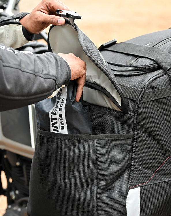 Launched in 2013 as India's first hybrid tail + saddle bag, Claw is our most popular bag in India and internationally. With a 72L capacity, this universal luggage system carries enough for a 2-3 week trip (if you pack right!) and works on almost all motorcycles. Using the MOLLE loop system and compression straps, you can choose to add on a 2/3 person camping tent, a sleeping bag or the POD 12L/ POD 22L expanders to better organize & separate out your stuff. The bag comes with an external rain cover and a detachable shoulder belt.