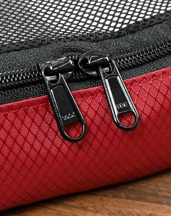 Constructed from tear-resistant Ripstop fabric, the Packing Cubes are built for repeated use on the road. Stress points are bar-tacked for extra reinforcement, while all seams use high-strength Nylon thread for superior durability. Heavy-duty YKK zippers ensure smooth, long-lasting operation, and the integrated mesh panel adds both breathability and visibility.