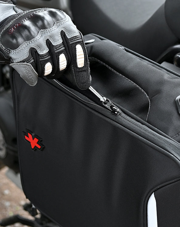 Use the handle to carry it off the bike, or as a duffle with the detachable shoulder strap.