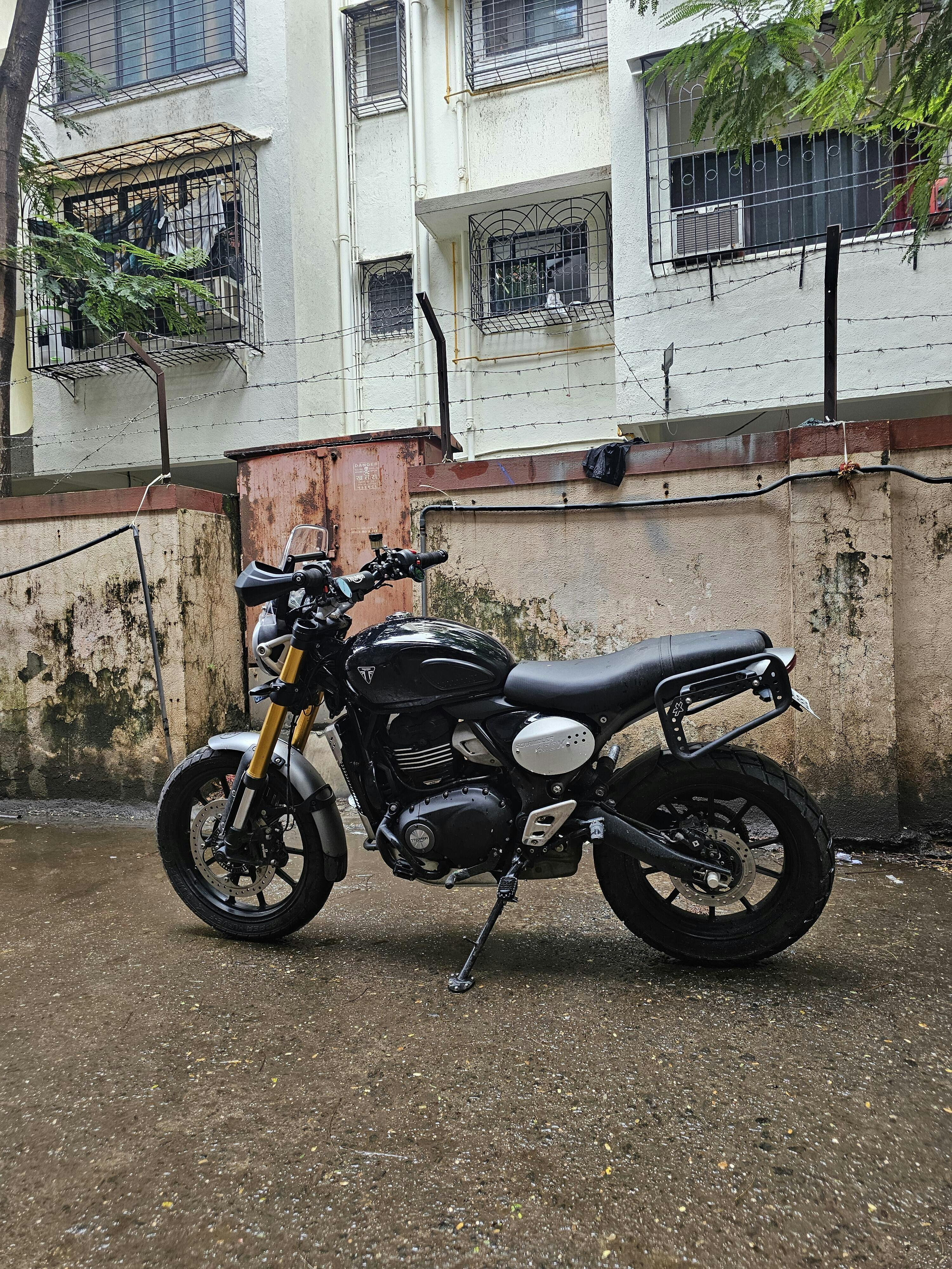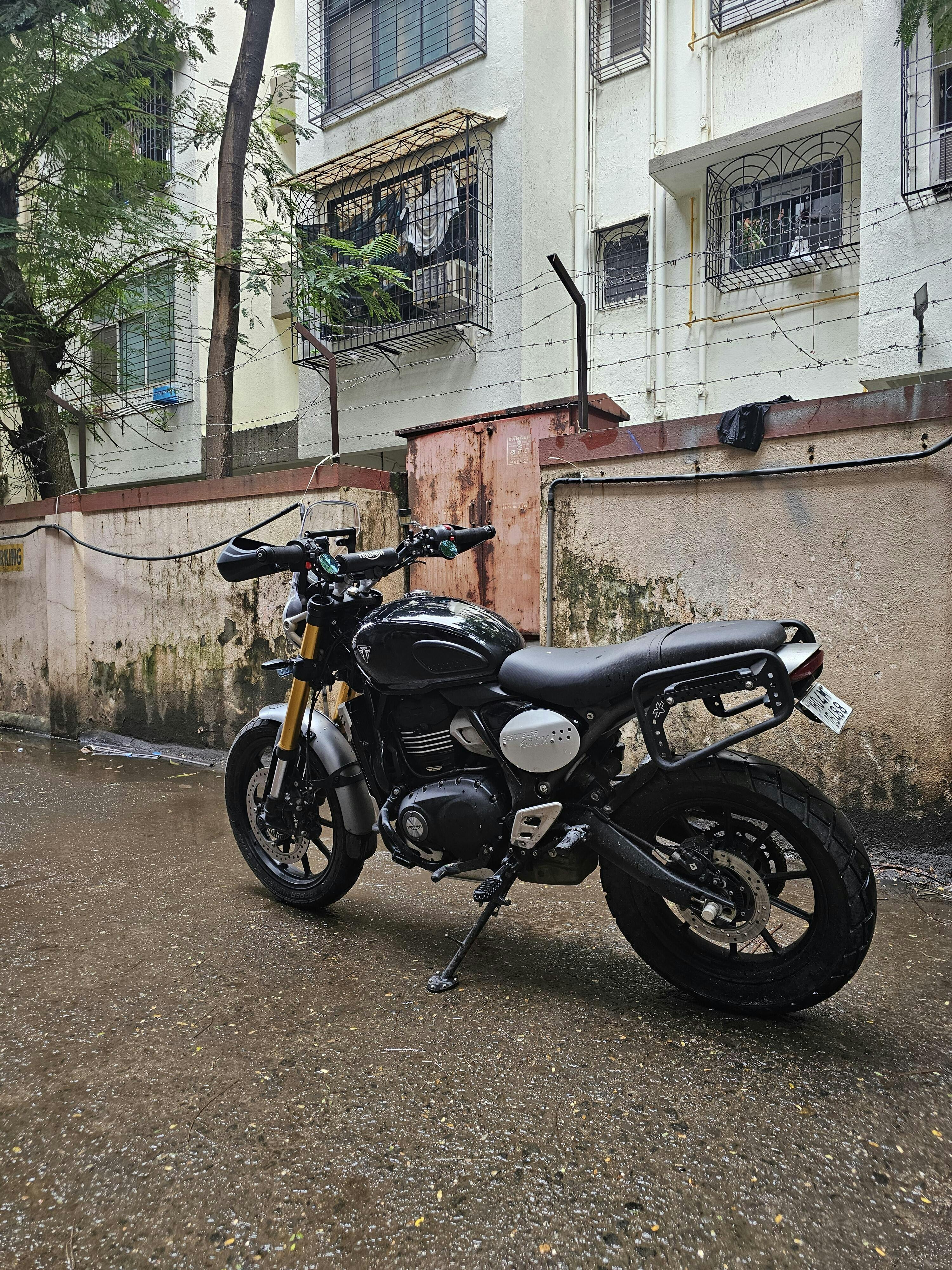 Aesthetics styled to give a sleeker look to the Speed 400 without a protruding cross mount. The use of button head screws prevents the fabric of the saddlebag from damage due to abrasion.