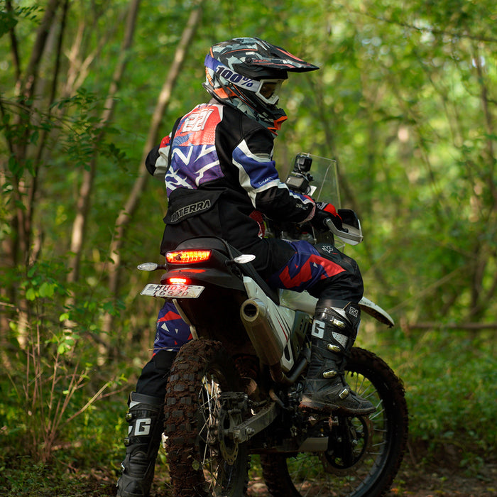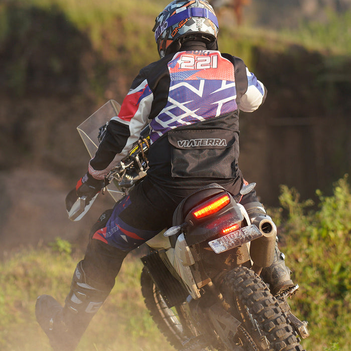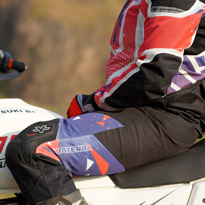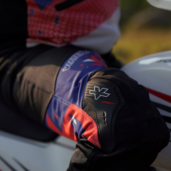 The Corbett Off-Road jacket and pants are designed to be worn over body armor and armored shorts. While the body armor sits close to the body, ensuring that it stays in place, it is important to make sure that the outer shell does not cause any discomfort or restriction. To ensure flexibility while riding, the outer shell should allow for adequate space and should not inhibit your movement.