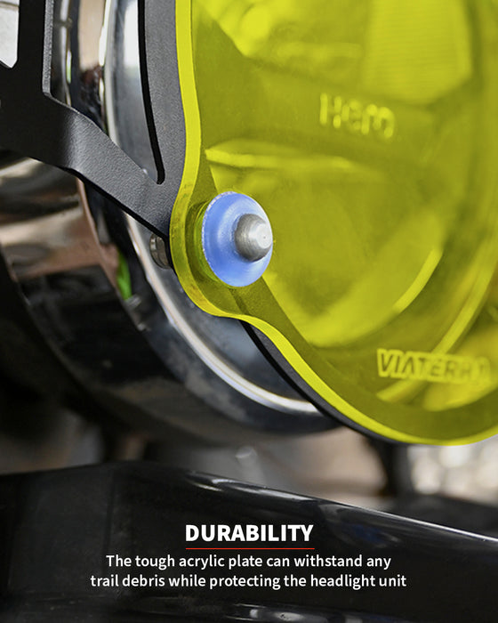 The exoskeleton is constructed from heavy-duty mild steel, providing increased structural stability and durability. The tough acrylic plate can withstand any trail debris while protecting the headlight unit, ensuring optimal performance and longevity.