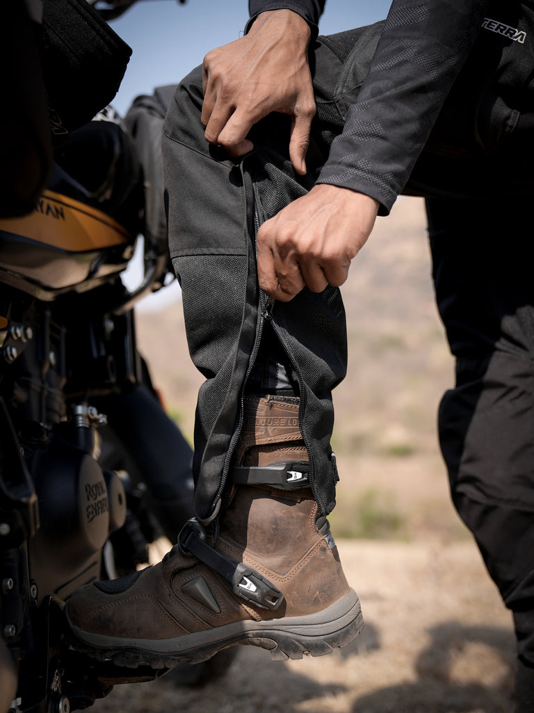The ViaTerra proprietary BootFlex system ensures a secure and comfortable fit over any riding boot.