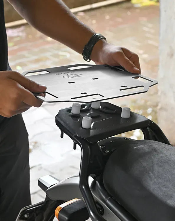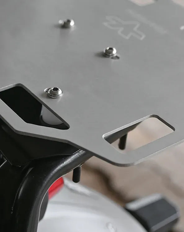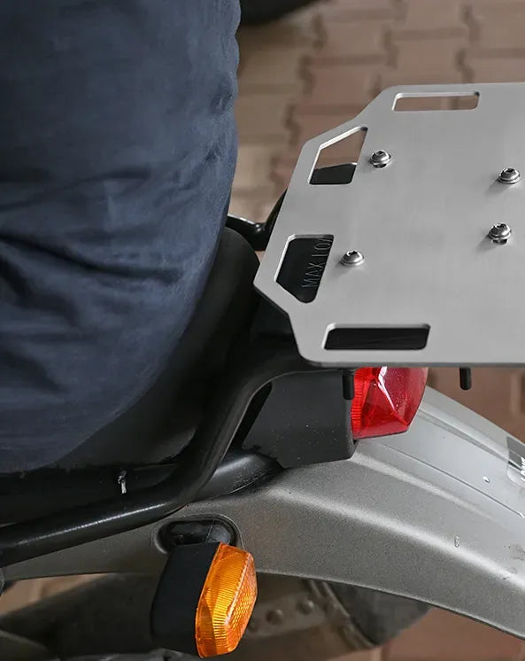 Perfect design, build and fitting. I wanted a large enough rack which would be more than an anchor point for luggage. The flat surface supports luggage, provides an anchor point for bindings, and acts as a work surface when I am working on the motorcycle. It is strong enough but marvellously light owing to its Aluminium build.
