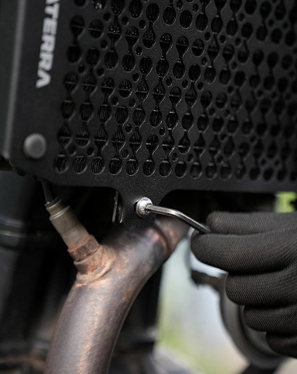 Keeps the smaller stones out when you're tearing down trails and helps protect the fins even when you're pressure washing your motorcycle.
