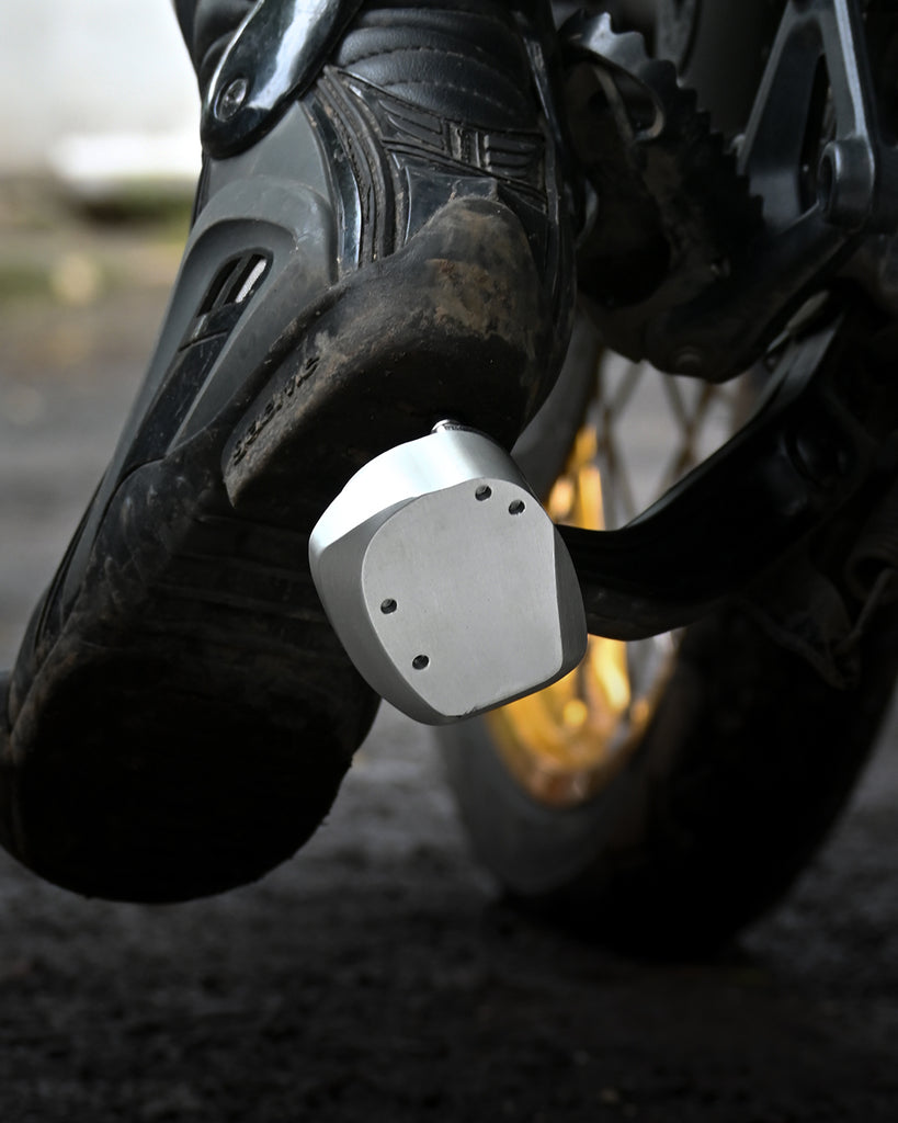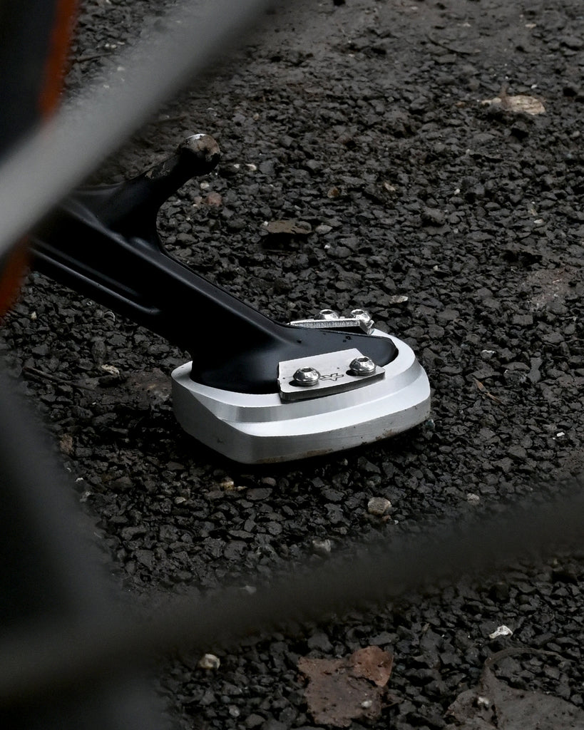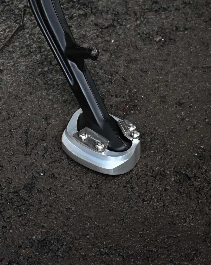Increases OEM sidestand footprint by 2 times for better stability on softer surfaces
