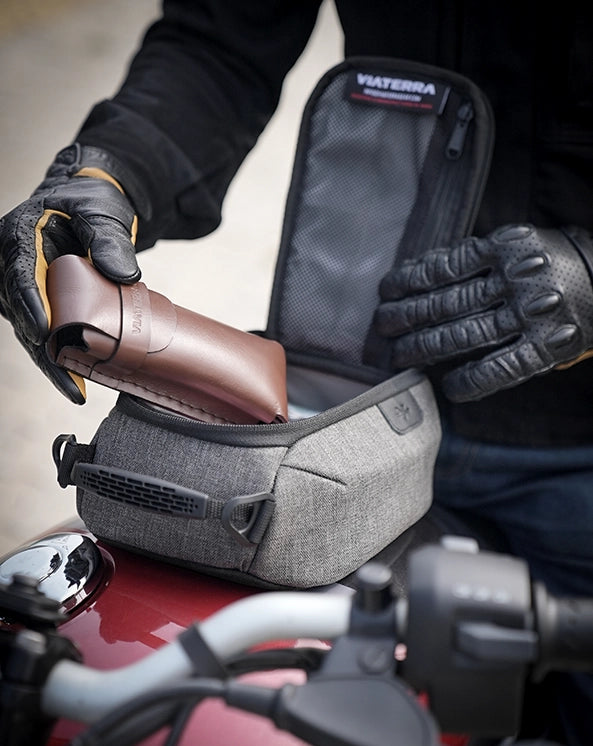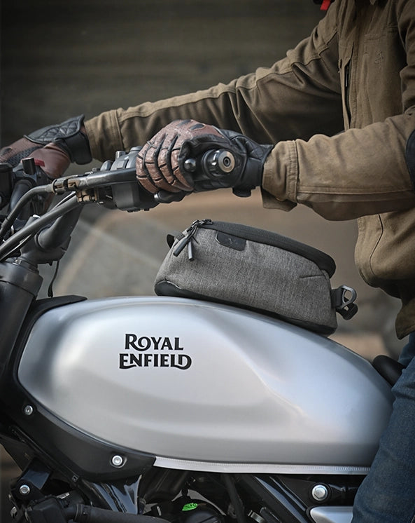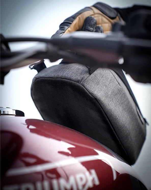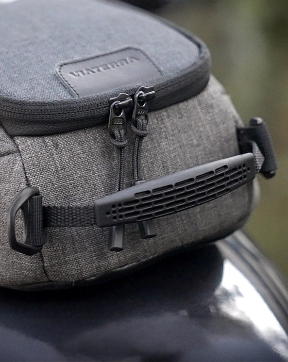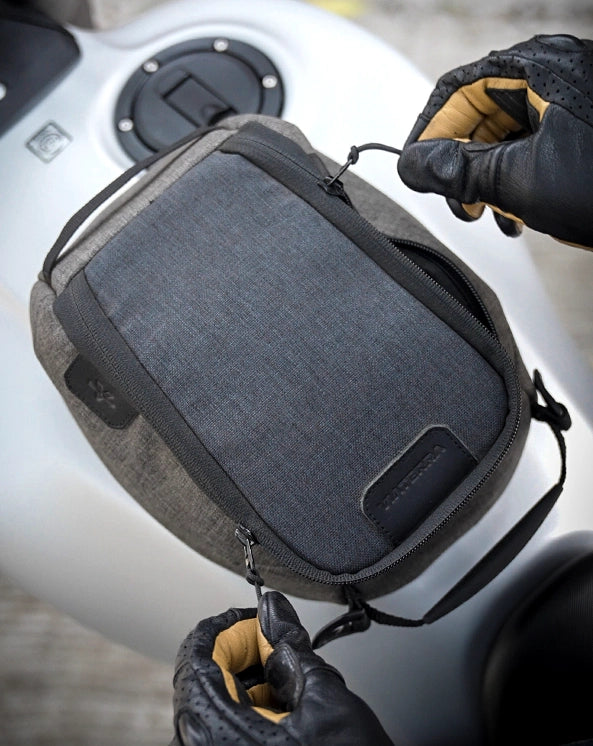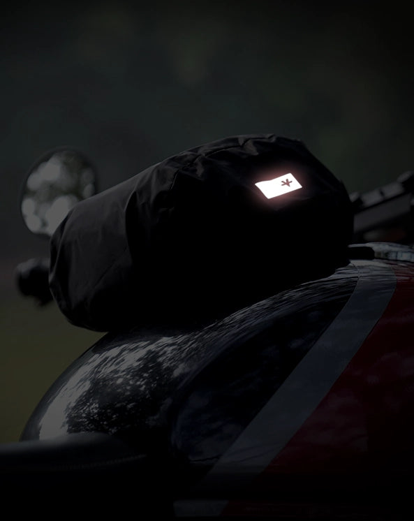 Low profile design that snaps onto the fuel tank easily, without distracting the rider or affecting the motorcycle's handling