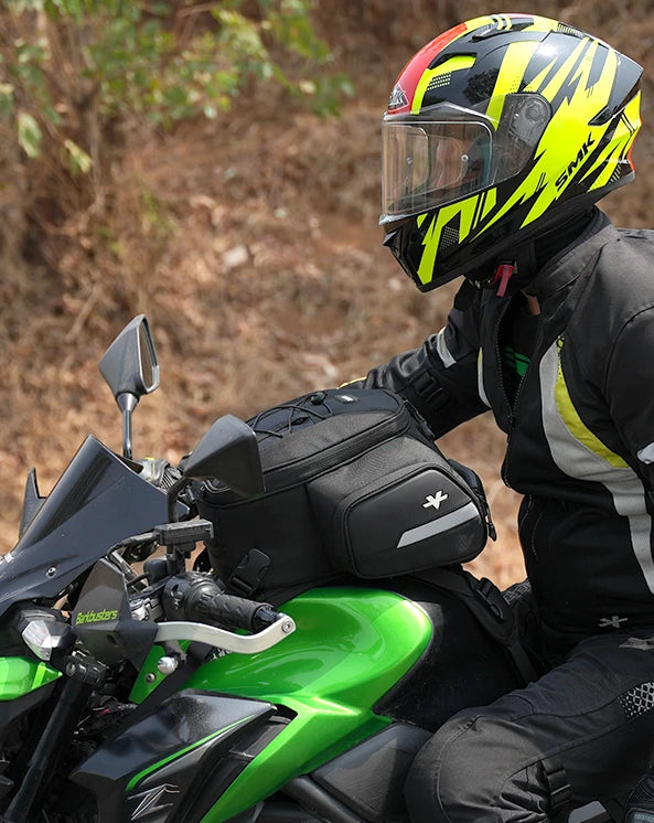 The Viper Pro comes with a base that is fixed to the tank, and is designed to remain on the motorcycle. The tank bag latches on to this base with side release buckles for smooth and seamless daily usage, while ensuring zero displacement on the go.