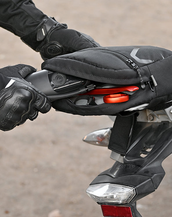 Trail rides or short weekend trips are supposed to be simple. This idea gave birth to the TrailPack series. The TrailPack for BMW G 310 GS allows you to carry an air compressor, puncture repair kit, basic tools, energy bars etc. All of which are essential for a trail ride. The best part about this design is that the rear rack can still be used to mount any additional soft luggage while the TrailPack is still mounted – ensuring all your essentials are easily accessible at any point.