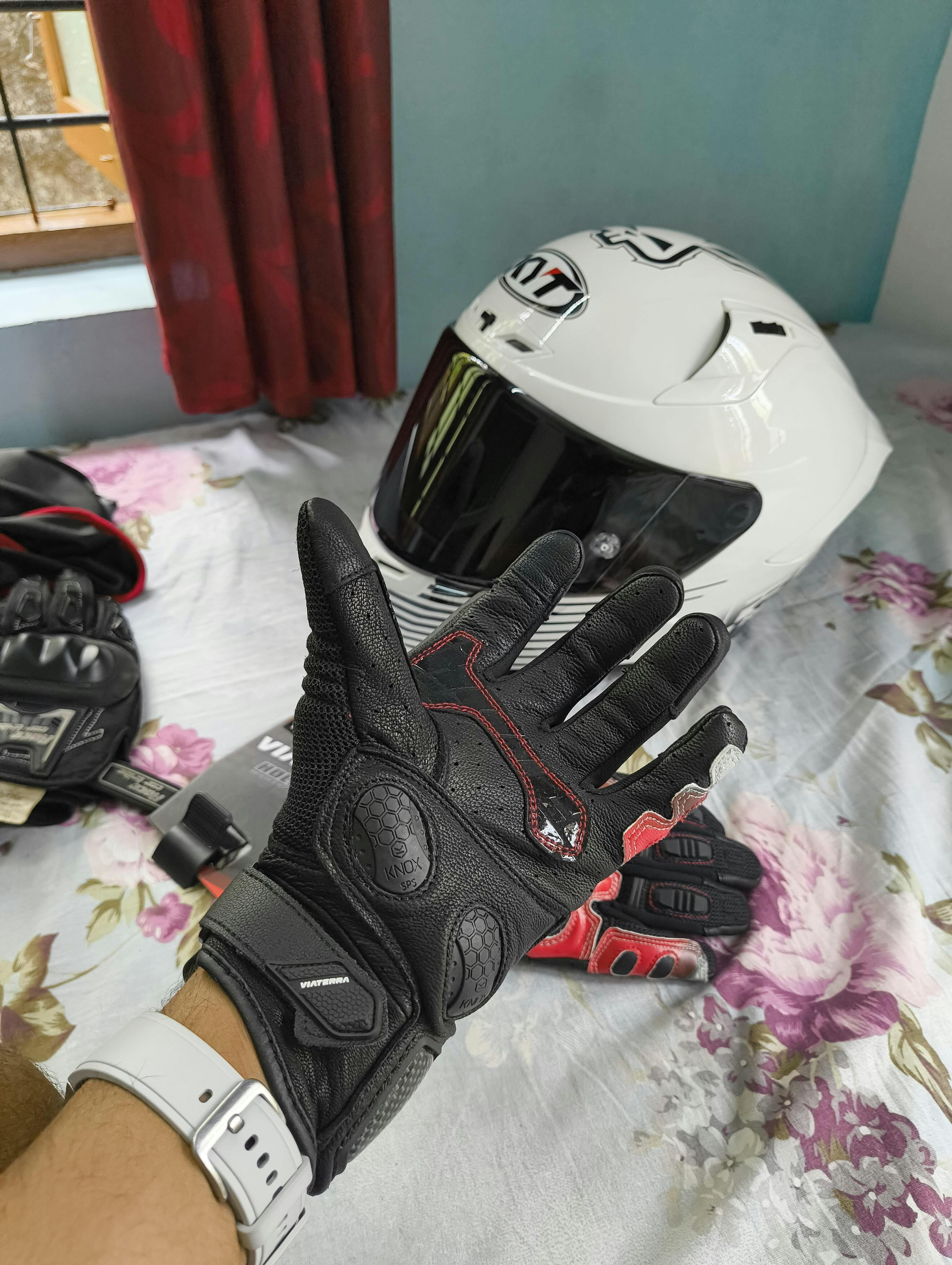 In our research, we found that the palm size and the finger length are not in the same proportion for everyone (that makes each of us unique in the truest sense!). In such cases, primary area of fitment should always be the palm area, even if you are to be left with some extra room near your fingertips. We have used hard protectors to maximise protection and longevity. While we have added an additional foam layer underneath them, they may feel a bit too hard at the beginning. Thinner and more flexible knuckle protectors are not very effective during a crash and do not last long either.