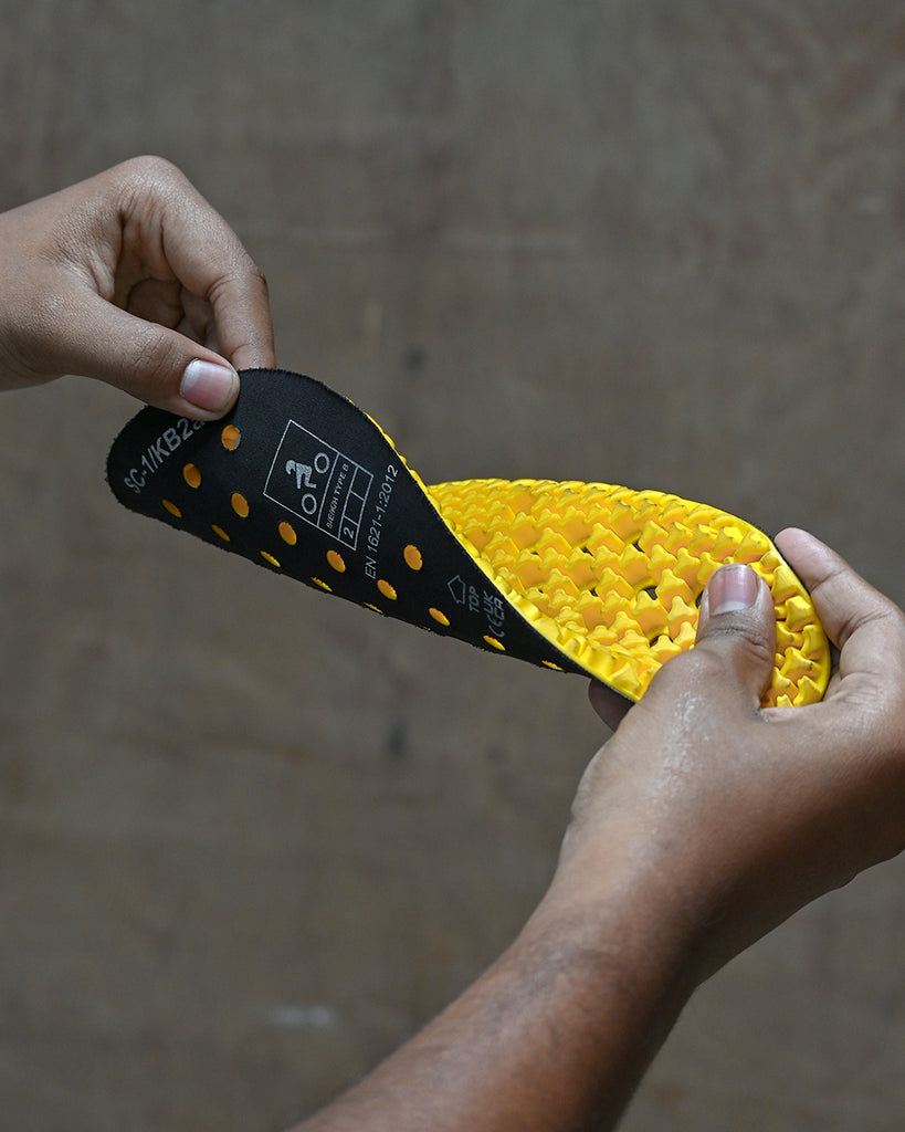 Note - Please note that the armour must be used with the yellow elements facing the body. If the armour is folded or bent or used with the yellow elements facing away from the body, the armour might get damaged. This is not covered under warranty.