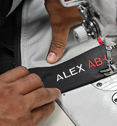 - Pattern edit & Production: We use your detailed measurements to adjust the component panels, tailoring the jacket or pants specifically to your body. Once the pattern is finalized, each panel is cut according to the selected materials, mesh, and trim colors. The panels are stitched together to form the garment. Measurements are checked before final assembly to ensure the finished piece meets the required fit and ease.