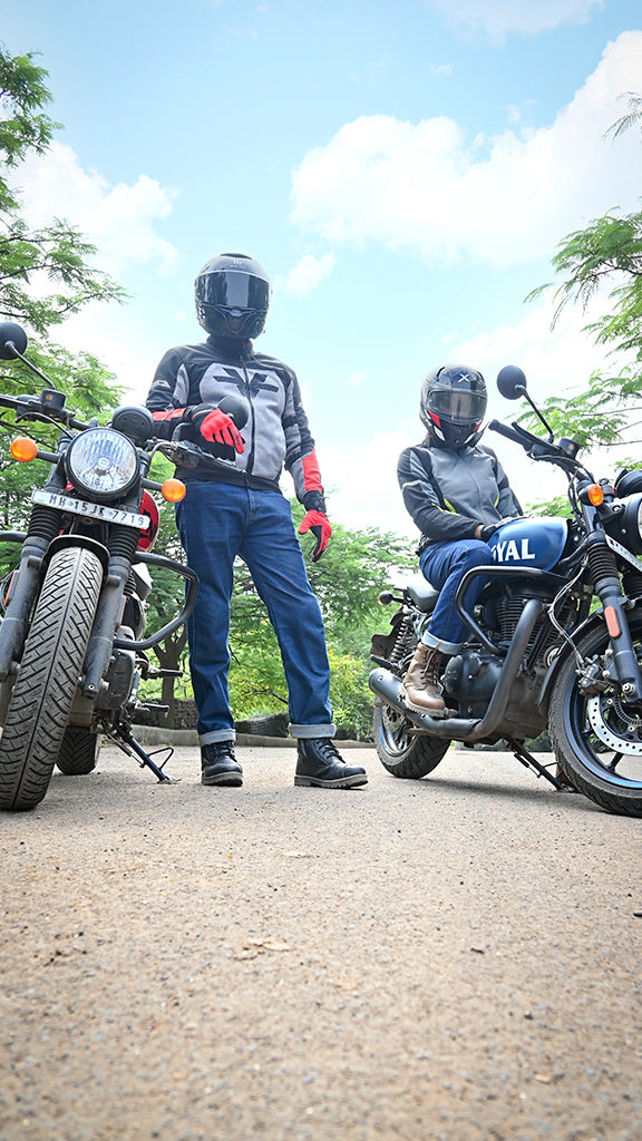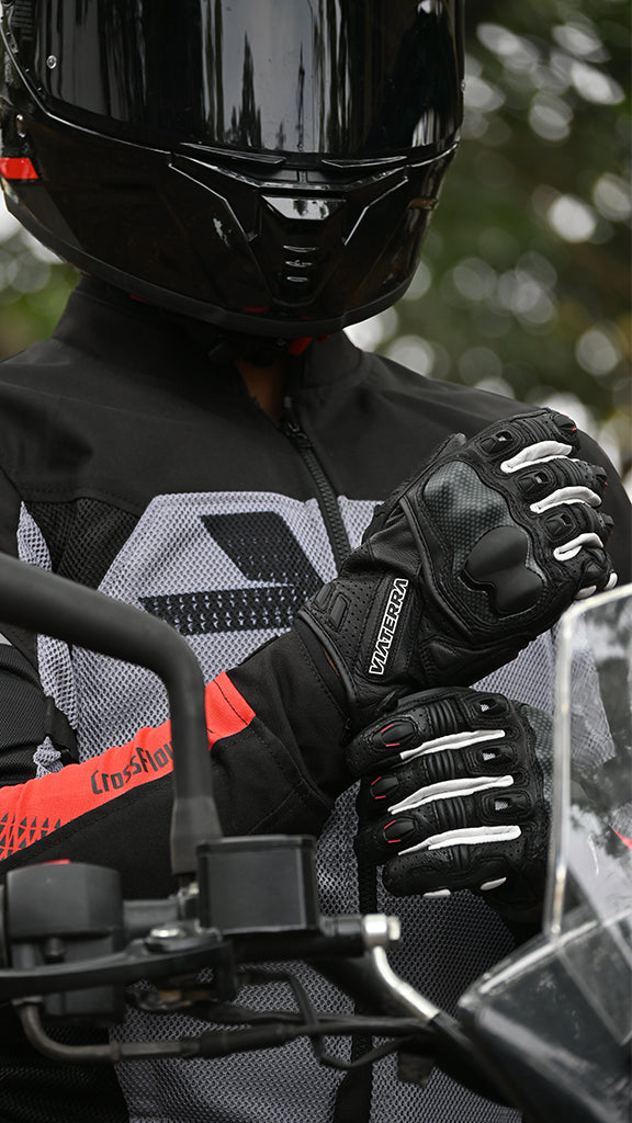 Introducing the perfect riding gloves for India's hot and humid climate - the Kruger mesh leather hybrid full gauntlet motorcycle gloves. The Kruger gloves are designed to provide superior ventilation and comfort while balancing protection - making them the best choice for riding gloves. Made with heavy-duty 3D mesh and full-grain goatskin, the Kruger gloves are lightweight and breathable, while allowing for greater dexterity without compromising on protection. The knuckle protection features Sas-Tec™ CE level 2-rated Viscoelastic armor, while the palms, wrist and pinky finger are reinforced with SuperFabric™ inserts for slide protection. The fingers come with soft PVC flex protectors, ensuring maximum comfort and protection. Additionally, the thumb and index finger tips are touch screen sensitive, allowing you to stay connected while on the road. For touring, the Kruger are the best riding gloves available in India, offering superior ventilation, protection and comfort.