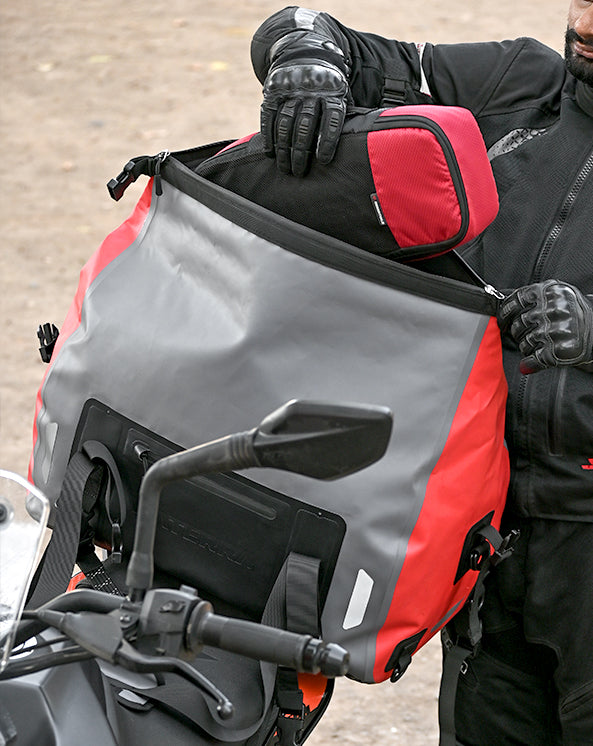The WP zipper on the roll top allows you extra volume in drier weather conditions (* For 100% waterproofing, we strongly recommend rolling down at least 3 times)