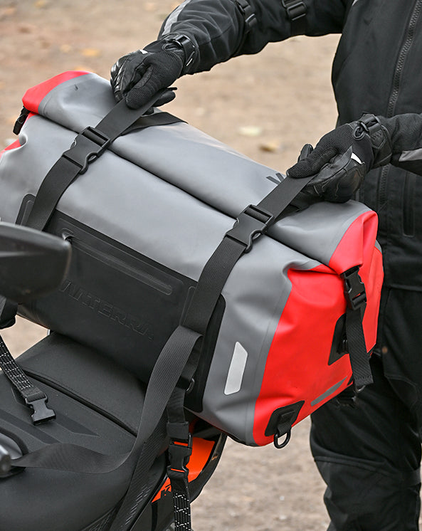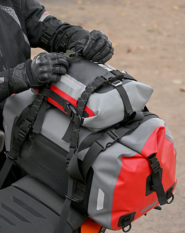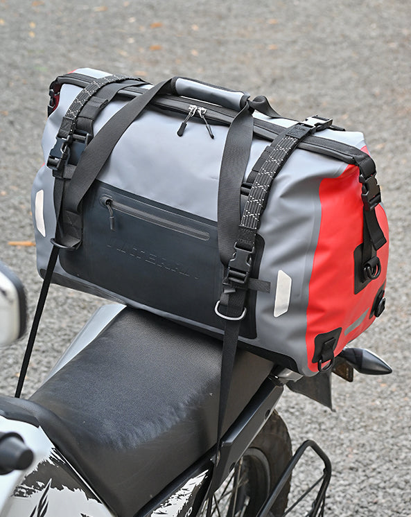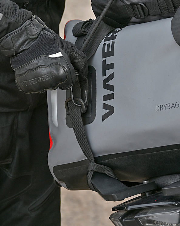 The combo webbing + flat bungee & side release buckle construction provides a true zero-displacement mounting. The fixed D Rings allow you to route the anchor straps and prevents any lateral movement of the DryBag when mounted correctly.