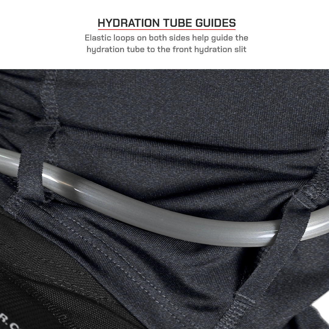 - Hydration slit & tube guide for easy access to the hydration tube during rides
