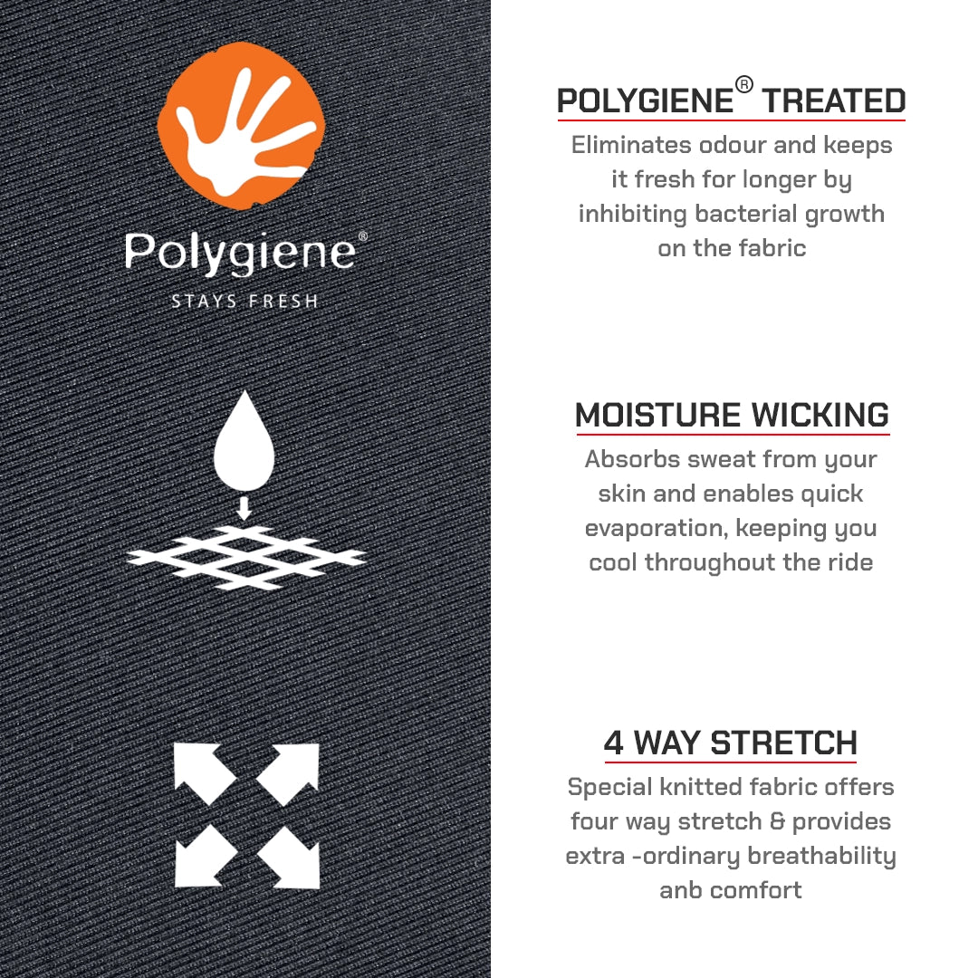 Treated with industry-leading Polygiene StayFresh antibacterial technology which inhibits the growth of odor-causing bacteria, so garments need less washing, saving water, energy and wear and tear.
