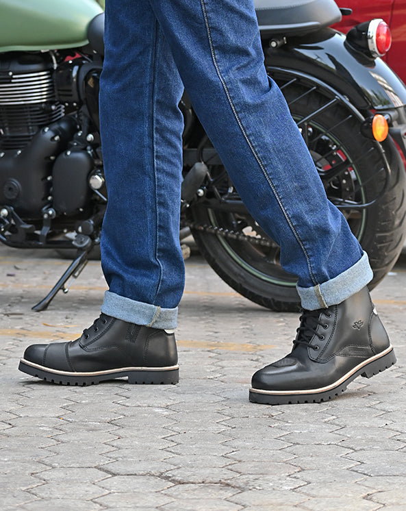 BRONSON - RETRO MOTORCYCLE RIDING BOOTS FOR MEN (BLACK)