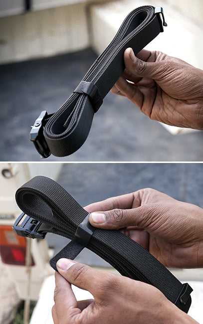 Easy to pack using the velcro locking straps and handy to carry as spare tie-downs without adding unnecessary bulk to your luggage.