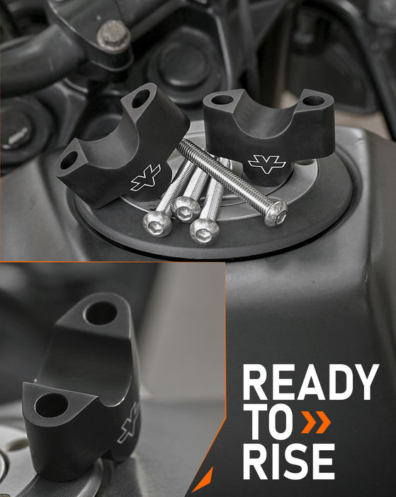 Improves ergonomics for extended rides and saddling by increasing the handlebar by 1 inch.
