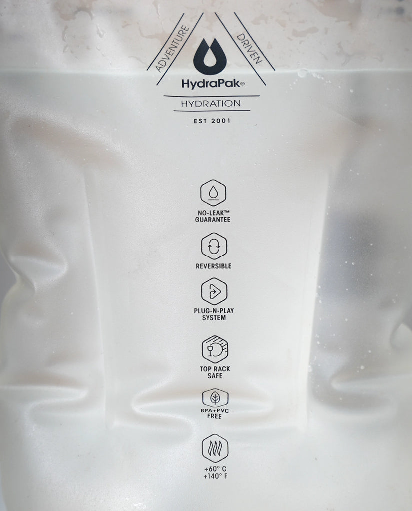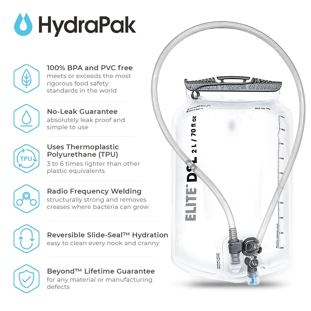 - The Hydrapak Bladder also features the patented Slide-Seal™ technology, which opens wide for quick and easy filling and closes tight for a leakproof seal.