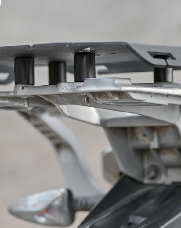The Quick Mount Rear Rack includes all required fasteners, spacers, and washers to ensure a simple and secure installation. Precision laser-cut mounting holes guarantee perfect alignment and fitment. It installs directly onto the BMW G310 GS subframe without any modifications, preserving full pillion comfort and easy access.
