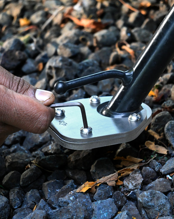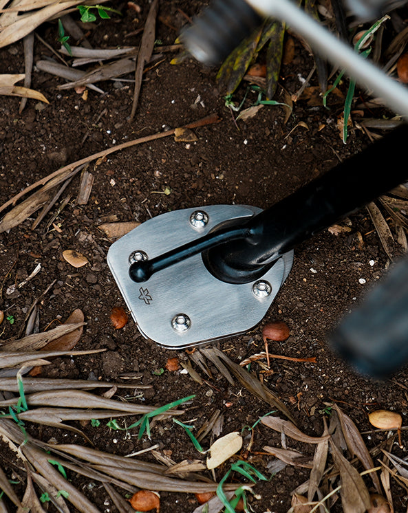 Increases OEM sidestand footprint by 2 times for better stability on softer surfaces