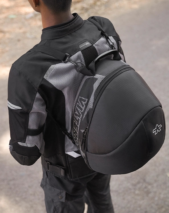 The ViaTerra Motorcycle Helmet bag is the perfect solution for protecting your expensive helmet from daily handling accidents. Designed to safeguard your helmet from small bumps, scratches, and dust, this bag helps to lengthen the lifespan of your helmet. Compatible with all full-face helmets and easily accommodating a modular or adventure helmet, the ViaTerra helmet bag features both backpack straps and a carry handle for easy transport, as well as airport-friendly aesthetics. The bottom zipper allows for easy access to the helmet, and the cavity can also be used as a storage pocket for your gloves, balaclava, wallet, and other small essentials. With ample space to keep your Bluetooth communication devices attached to your helmet, the ViaTerra Helmet bag is the ultimate accessory for any helmet owner!