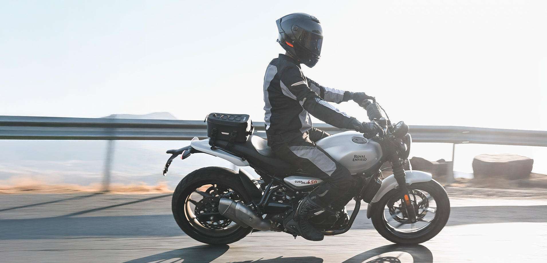Translation: Perfectly suited to the 450 Himalayan, these panniers are practical, waterproof and allow you to distribute the weight of luggage, especially with a passenger.